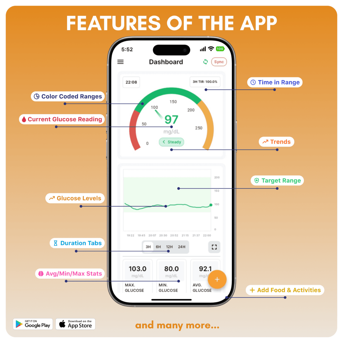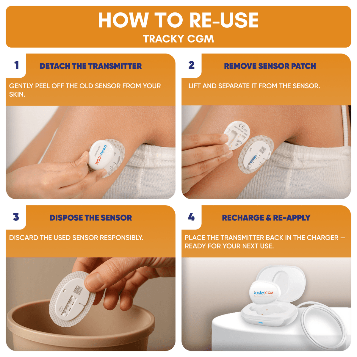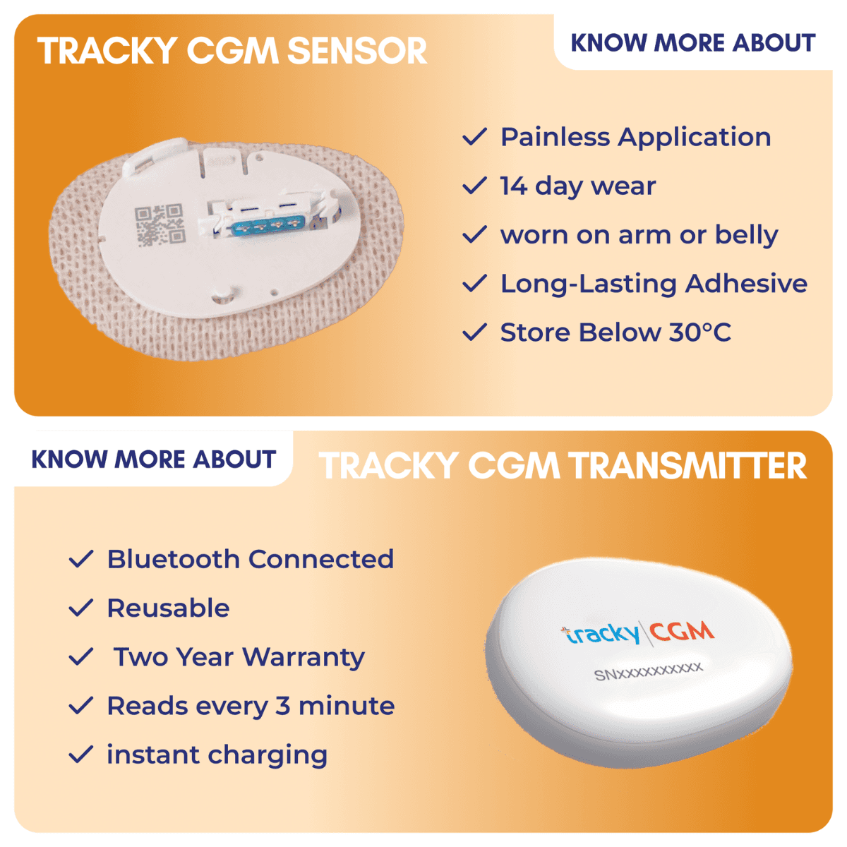 Tracky CGM is a state-of-the-art technology designed to revolutionize diabetes management. It provides real-time readings every 3 minutes of blood glucose levels throughout the day and night, ensuring continuous monitoring. These advanced devices empower individuals with diabetes by delivering detailed and actionable data to guide treatment decisions, helping to achieve better health outcomes.
